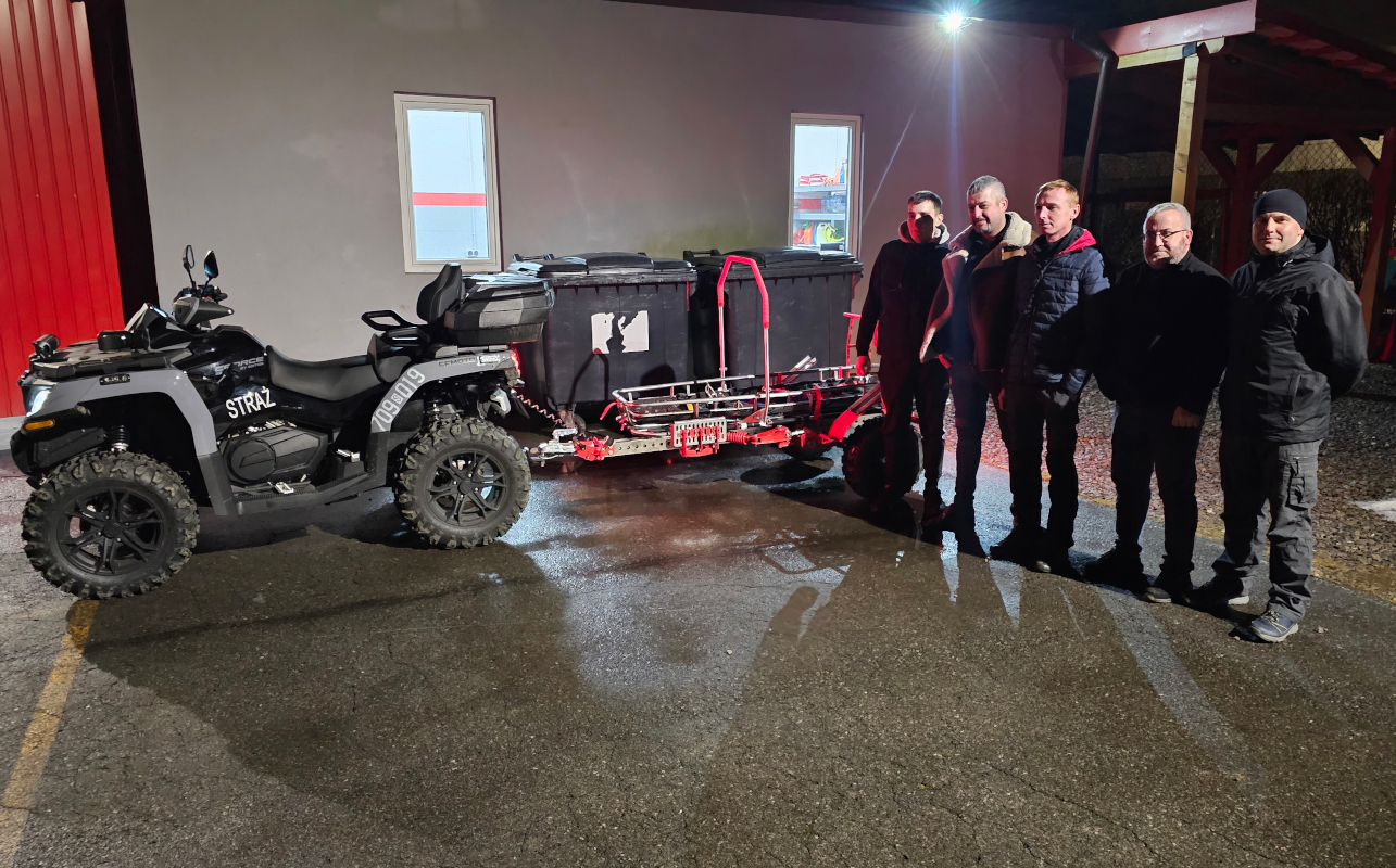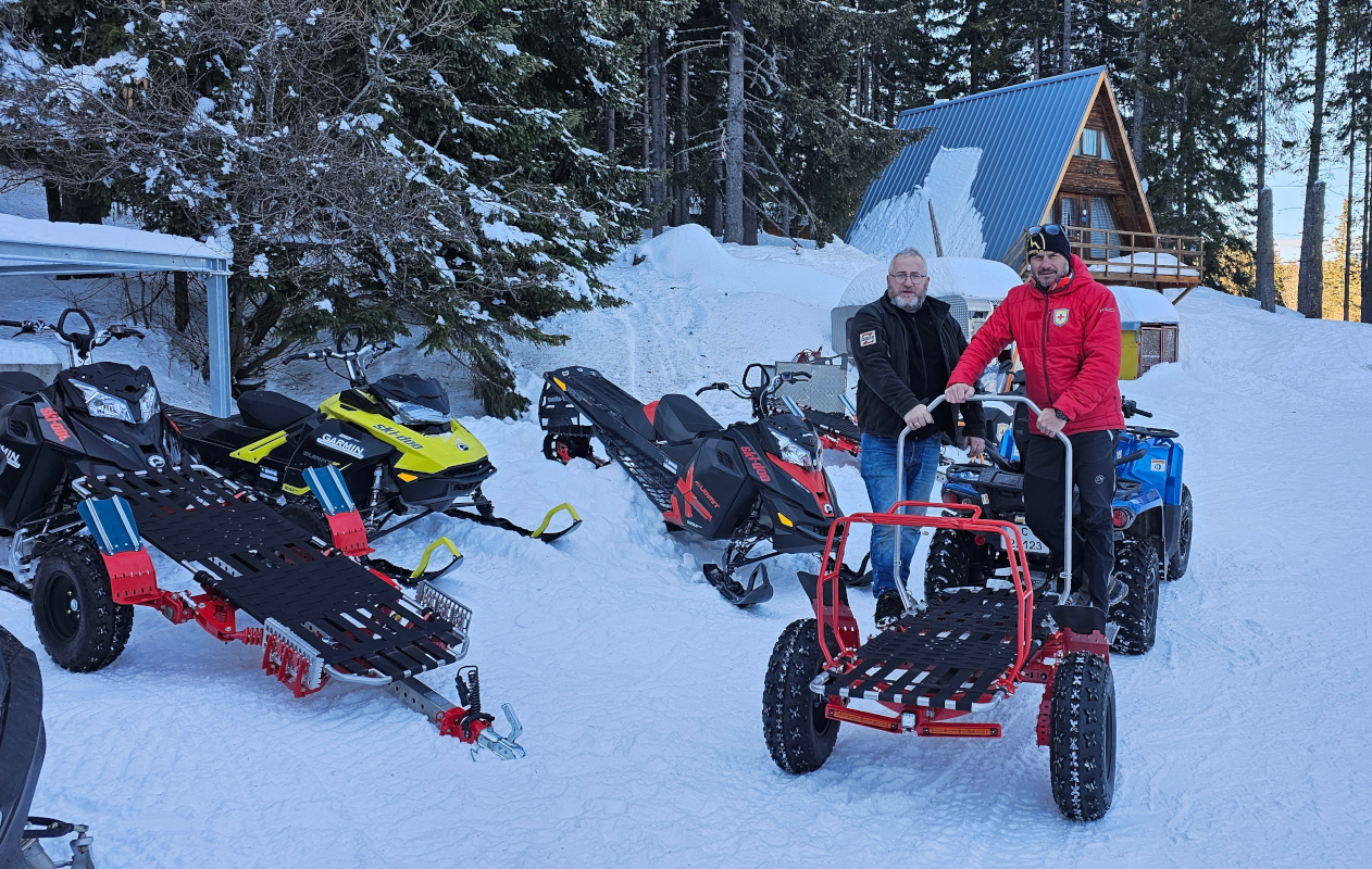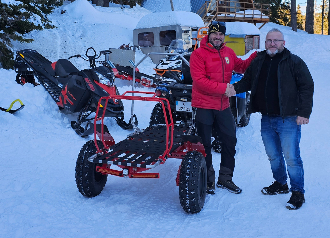 Przekazanie 5 przyczep projektu ZC20.27 na służbę do Bułgarskiego Czerwonego Krzyża -Mountain rescue. Będą pomagać ewakuować rannych w pięknych bułgarskiech górach. Grudzień 2024 r.